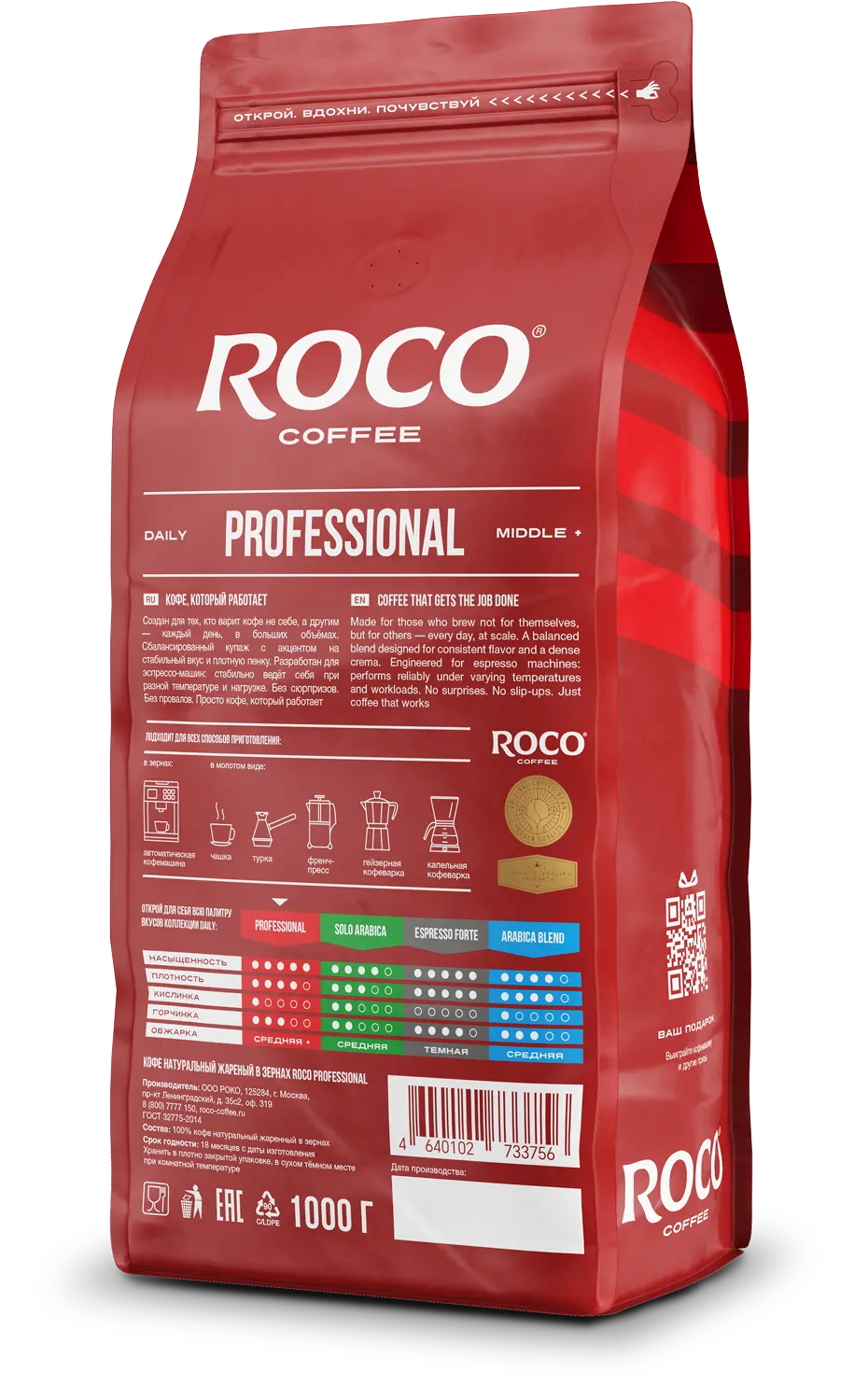 Ассортимент ROCO разработан так, чтобы закрывать разные сценарии потребления: от повседневного утра до профессиональных кофемашин